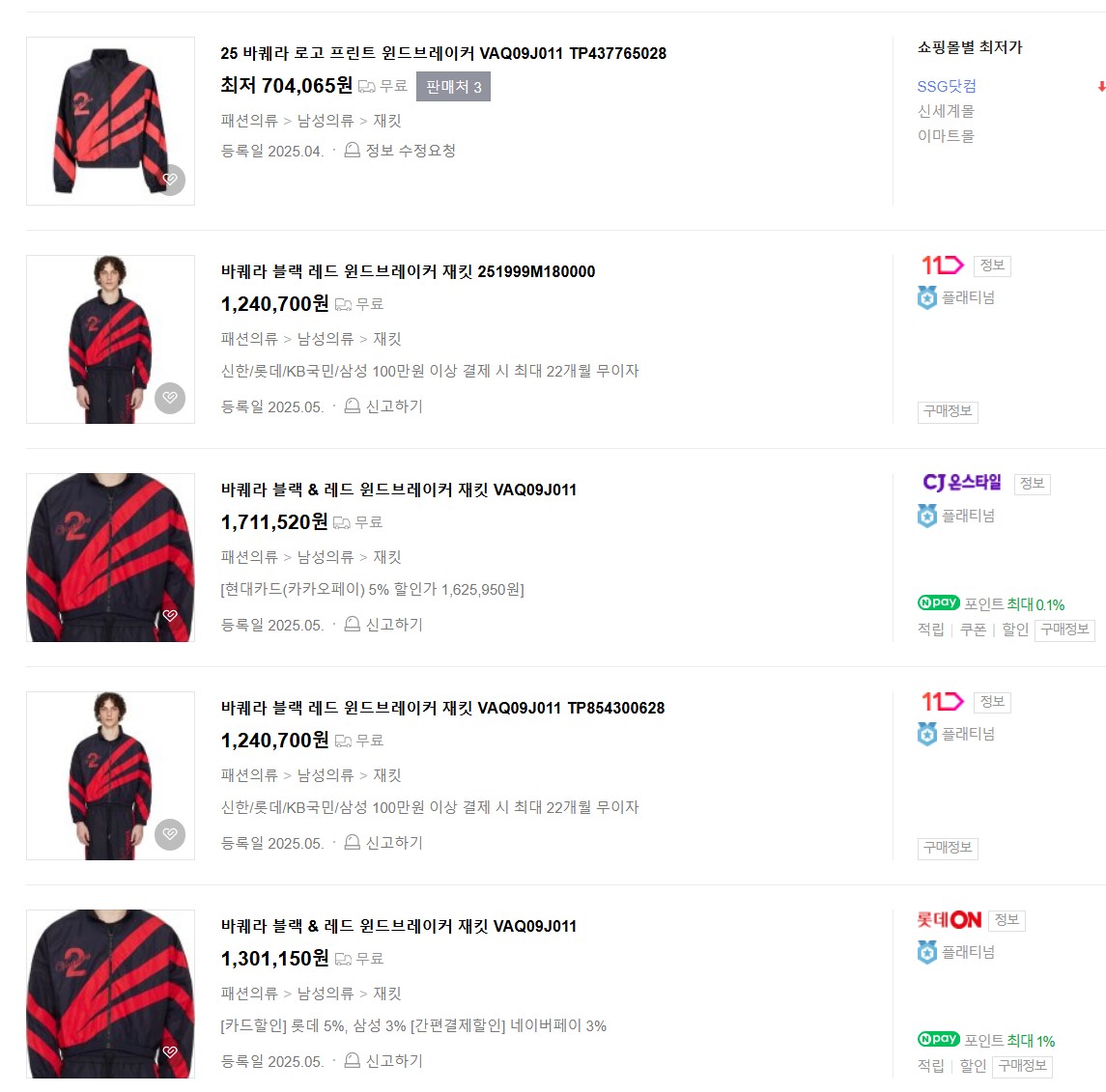130만 원에서 170만 원 이상... 음 바람막이를 이 가격에 산다는 것 좀...