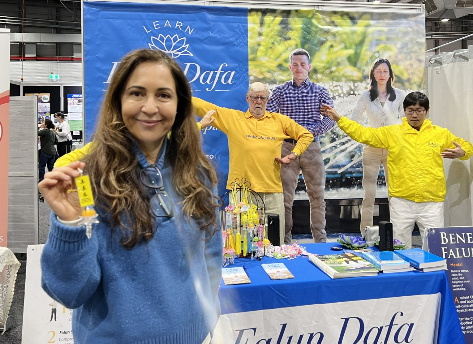 파룬궁수련생 애나는 많은 관람객이 파룬궁에 관심을 갖고 다양한 질문을 했으며 인연 있는 사람들도 적지 않게 만났다고 말했다. 중국인 양(楊) 씨는 파룬궁 전시 부스를 보고 매우 기뻐하며 수련자와 한참 담소를 나누었다. 애나는 양 씨에게 파룬궁의 특징을 소개했는데, 파룬궁은 건강 증진뿐 아니라 심성 수련을 더 중시하며, 진선인의 표준에 따라 자신을 향상시킨다고 설명했다. 또한 자신의 수련 체험과 몸과 마음의 변화에 대해서도 이야기했다. 즉 자신의 성격이 좋아졌고 다른 사람을 위해 노력하게 됐으며, 자신의 감정을 통제하게 됐다고 했다. 주변 사람들도 자신이 완전히 달라졌다며 예전처럼 화를 잘 내지 않게 됐다고 말했다.