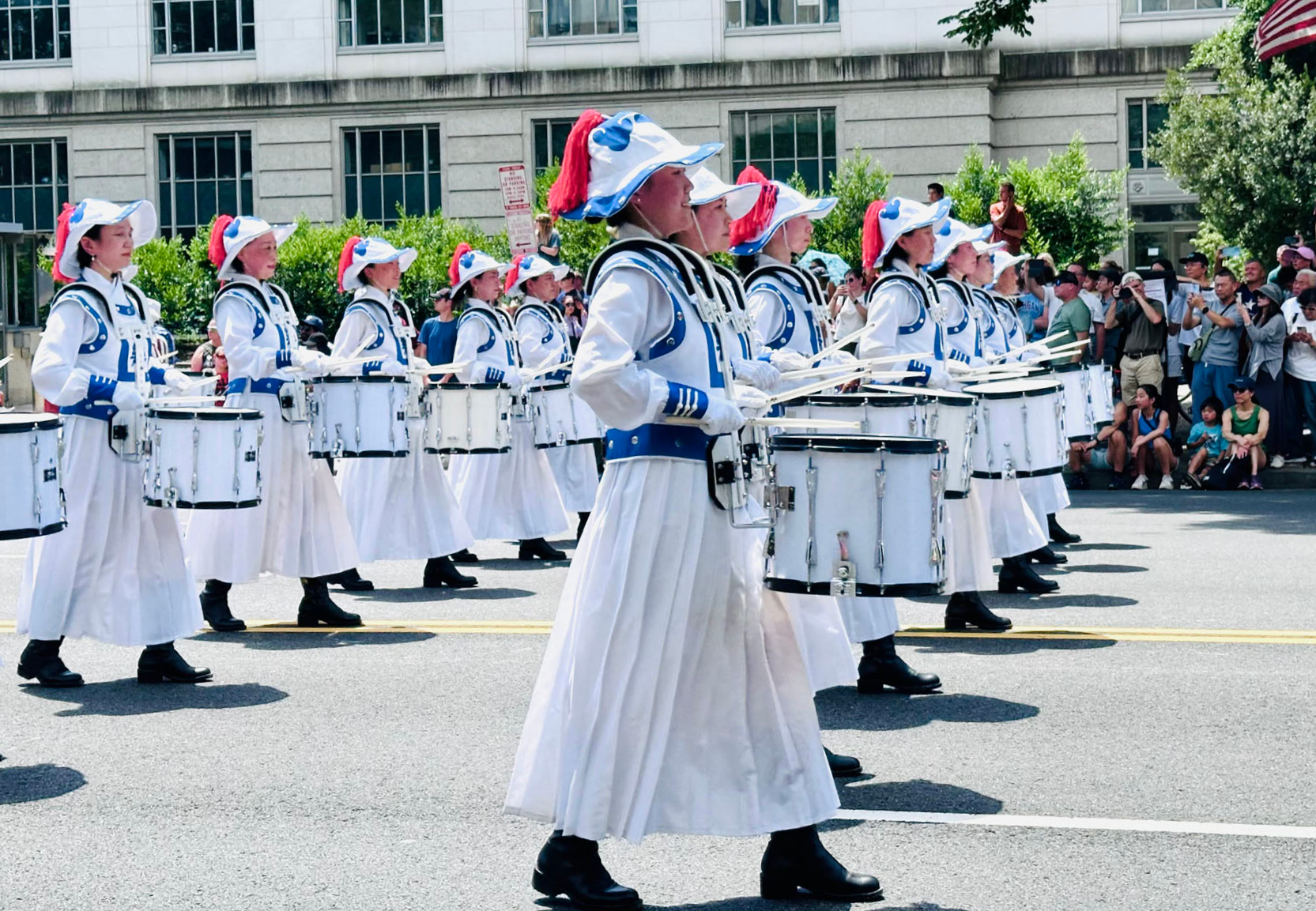 그녀는 오늘 워싱턴의 날씨가 매우 더워 악단 단원들에게 도전이 되었지만, 도로변 관중들의 환호와 갈채를 보며 모두가 매우 고무되었다고 말했다. 그녀는 이번 퍼레이드에 참가하게 되어 매우 기쁘다고 말했다. "사실 독립기념일은 제가 가장 좋아하는 축제 중 하나입니다. 미국의 자유와 포용의 정신을 사랑하기 때문입니다. 수도의 넓은 대로에서 대규모 퍼레이드에 참가하니 마음이 특별히 기쁘고 힘든 것도 잊게 됩니다. 양쪽에 관중이 많아서 이 축제의 날에 우리가 파룬따파 수련을 통해 느낀 아름다움을 나누고 미국에서 신앙 자유를 누릴 수 있음에 감사할 수 있어 기쁩니다. 관중들은 악단 단원들이 입은 아름다운 당의(唐衣)를 보고 모두 눈이 휘둥그레져서 우리가 매우 특별한 군악대라고 말했습니다."