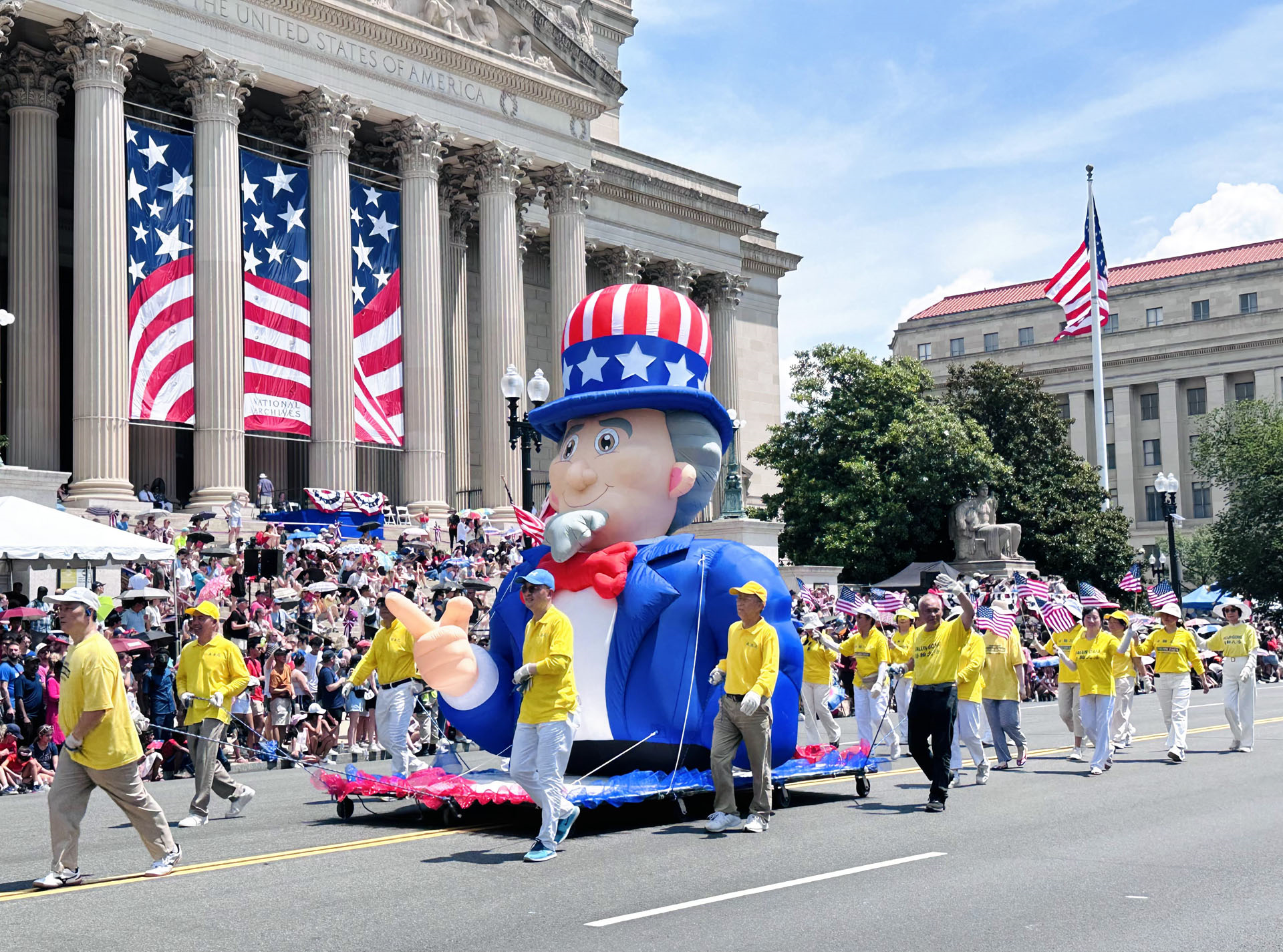 지난 7월 4일, 파룬따파(法輪大法, 파룬궁) 수련 단체가 다시 한번 미국 수도 워싱턴D.C의 독립기념일 퍼레이드에 초청받아 참가했다. 미국 전역과 세계 각지에서 온 수십만 명의 관광객이 워싱턴을 찾아 미국에서 가장 성대한 독립기념일 축하 행사를 현장에서 체험했다.