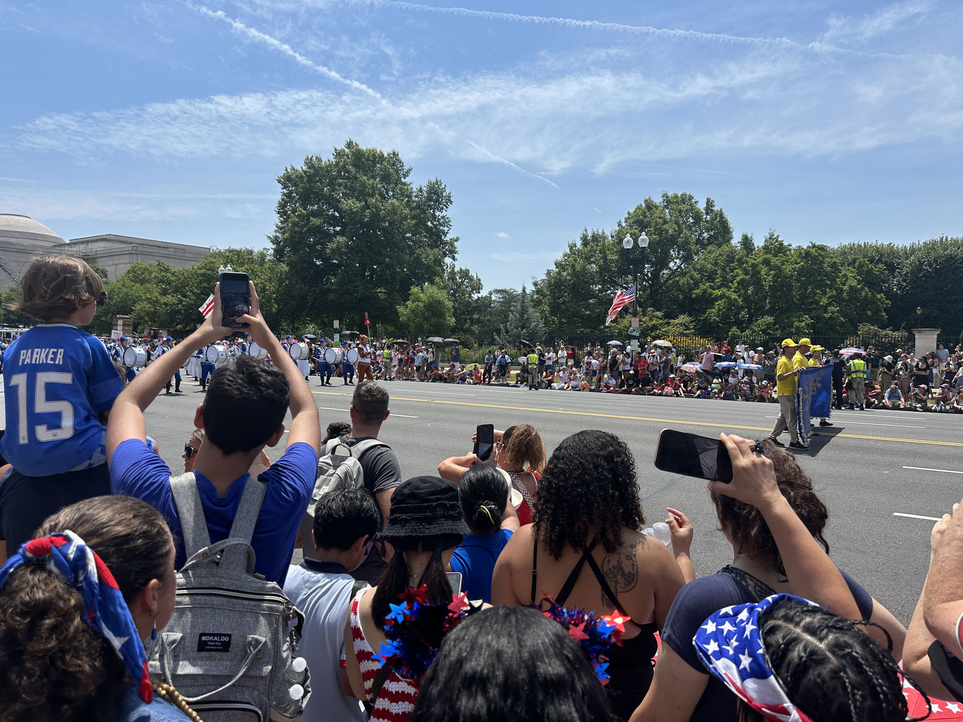오전 11시 45분, 퍼레이드 행렬이 워싱턴 헌법가와 7번가 교차로의 출발점에서 출발했다. 파룬궁 퍼레이드 행렬이 헌법가에 나타났을 때, 길가 시민들은 박수를 치며 환호했고, 많은 사람이 휴대폰으로 동영상을 촬영하며 가족과 친구들과 공유했다.